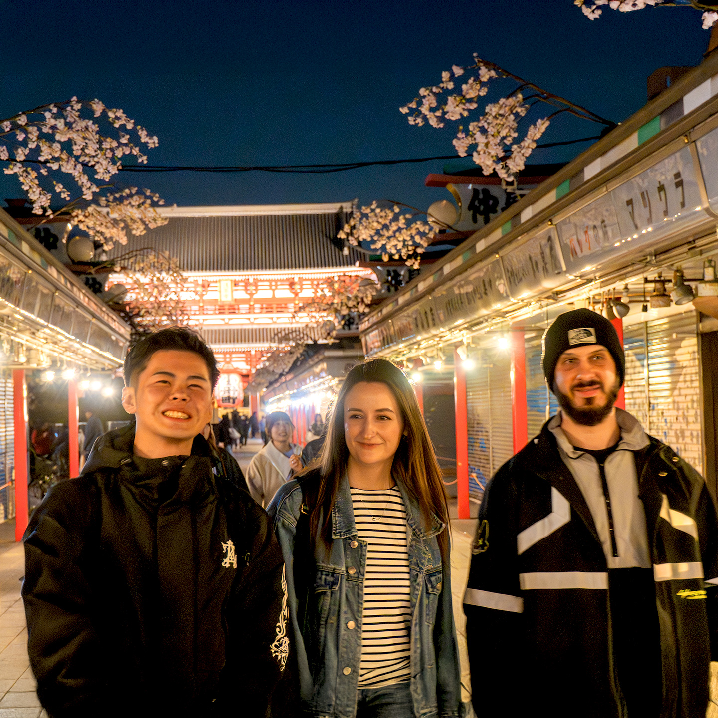 Asakusa after dark feels totally different. You’ve got the grand, silent beauty of the temple on one side and the clinking glasses of the narrow drinking alleys
